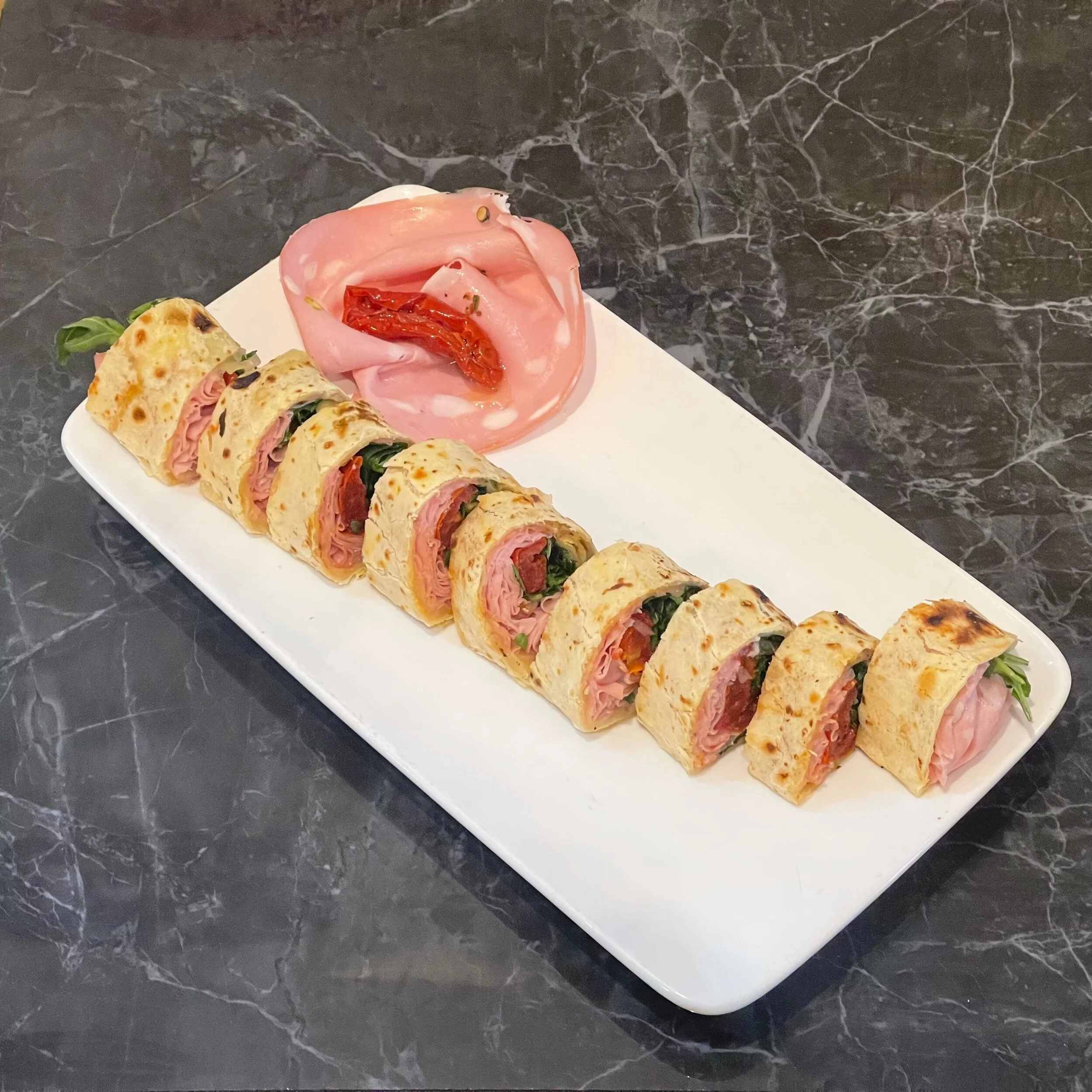 (végétarienne) Tomates séchées, mozzarella di buffala, fromage taleggio, salade de roquette